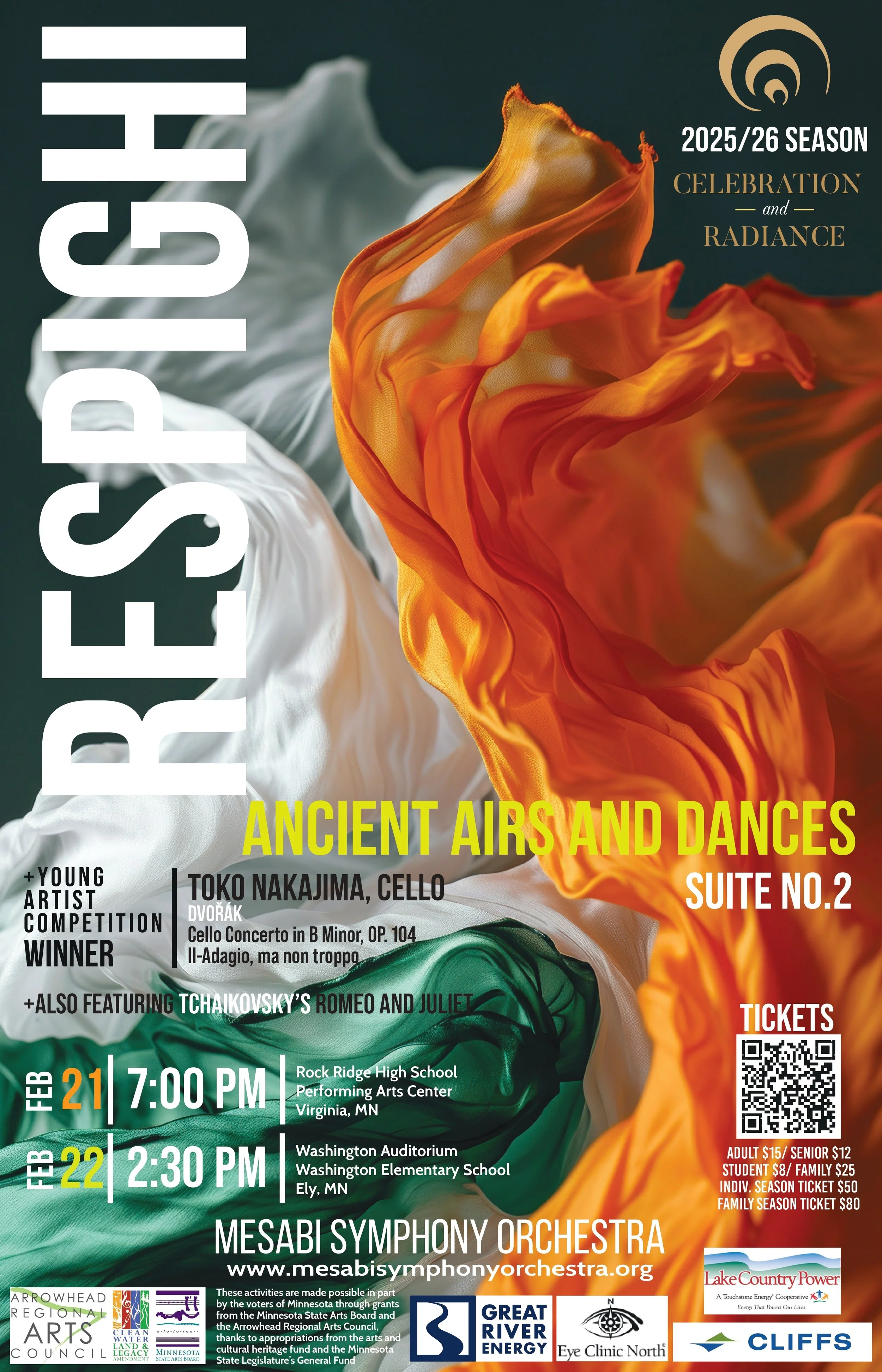 Join us as we begin our concerts in 2026 and celebrate the artistry of our Young Artist Competition winner Toko Nakajima! A Duluth-based cellist, Toko our featured soloist and she will perform the 2nd movement from Dvorák’s iconic Cello Concerto. This will be a performance not to be missed. Toko’s performance will be passionate as she performs this intensely romantic music.